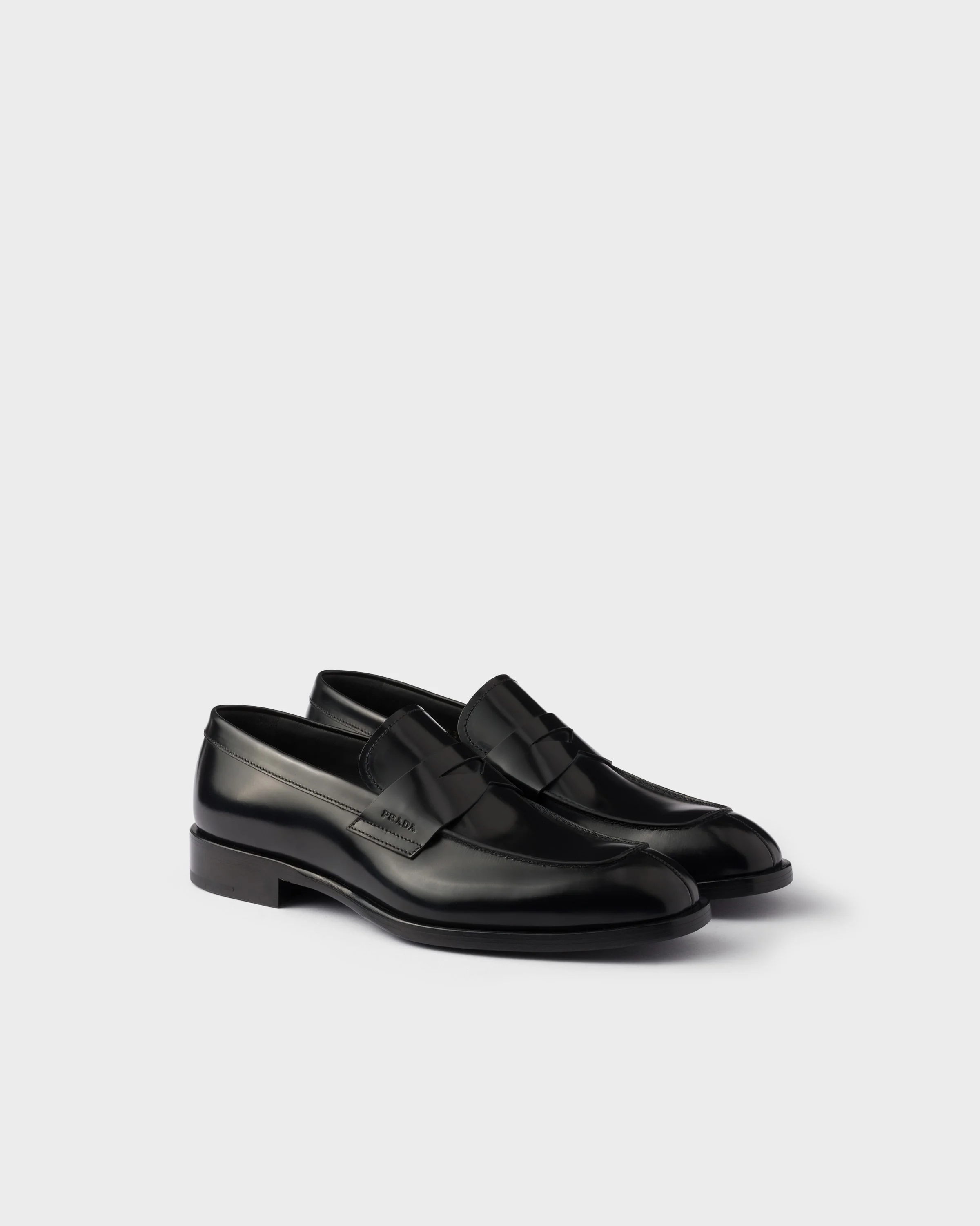 These brushed leather loafers reinterpret formal footwear with an elegant, minimalist design. The artisan construction emphasizes the pure lines of the silhouette, while the sleek details give the shoe refined, contemporary allure. - Product code: 2DB236_055_F0002_F_X024 - Hot-stamped logo on the vamp - Leather sole with rubber half-sole - Heel height 20 mm - Imported MATERIALS Main material: Calfskin