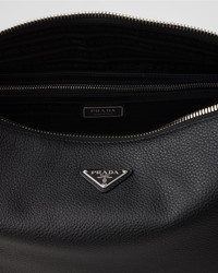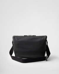 This contemporary and pragmatic leather bag has a soft silhouette with sleek details. The woven tape shoulder strap completes the design with a sporty and versatile note. - Product code: 2VH182_2BBE_F0002_V_NOO - Adjustable woven tape shoulder strap. Maximum length 120 cm - Minimum length 66 cm - Maximum drop 52 cm - Minimum drop 22 cm - Enameled metal triangle logo on the front - Zipper closure - Interior with zipper pocket - Logo-print Re-Nylon lining - Imported Height: 25cm Width: 31.5cm Length: 14cm MATERIALS Main material: Calfskin