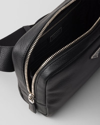 This plush leather shoulder bag with sleek lines and a structured silhouette is decorated with a playful charm that gives the accessory an original, contemporary touch. - Product code: 2VH181_2BBE_F0002_V_OO5 - Bag charm included - Adjustable leather shoulder strap. Maximum length 110 cm - Minimum length 60 cm - Enameled metal triangle logo on the front - Zipper closure - Flat pocket on the back - Interior with zipper pocket - Logo-print Re-Nylon lining - Imported Height: 16.5cm Width: 24cm Length: 7cm MATERIALS Main material: Calfskin