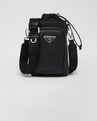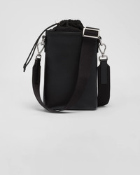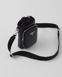 Contemporary and avant-garde, this leather smartphone case features an adjustable nylon tape strap to wear around the neck. The accessory is embellished with the emblematic triangle logo. - Product code: 2ZH155_2CND_F0002 - Drawstring closure - Enameled metal triangle logo - Detachable, adjustable nylon tape shoulder strap - Imported Height: 18cm Width: 13cm MATERIALS Main material: Calfskin