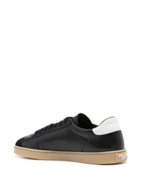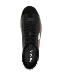 black front lace-up fastening contrasting branded heel counter enamel triangle logo logo-debossed tongue - Color: BLACK/WHITE - Made in: Italy - Designer Style ID: 2EE394 F G000 Y5T F0967 Composition and care Outer Composition Calf Leather: 100.0%, Lining Composition Calf Leather: 100.0%, Outer Composition Calf Suede: 100.0%, Sole Composition Rubber: 100.0%