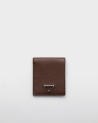 This leather wallet, which stands out for its sleek design, has eight card slots and two bill compartments. The enameled metal triangle logo completes the accessory with a distinctive touch. - Product code: 2MO513_2E54_F0038 - Enameled metal triangle logo - Eight card slots - Two bill compartments - Moire and leather lining - Imported Height: 9.5cm Width: 11cm MATERIALS Main material: Calfskin