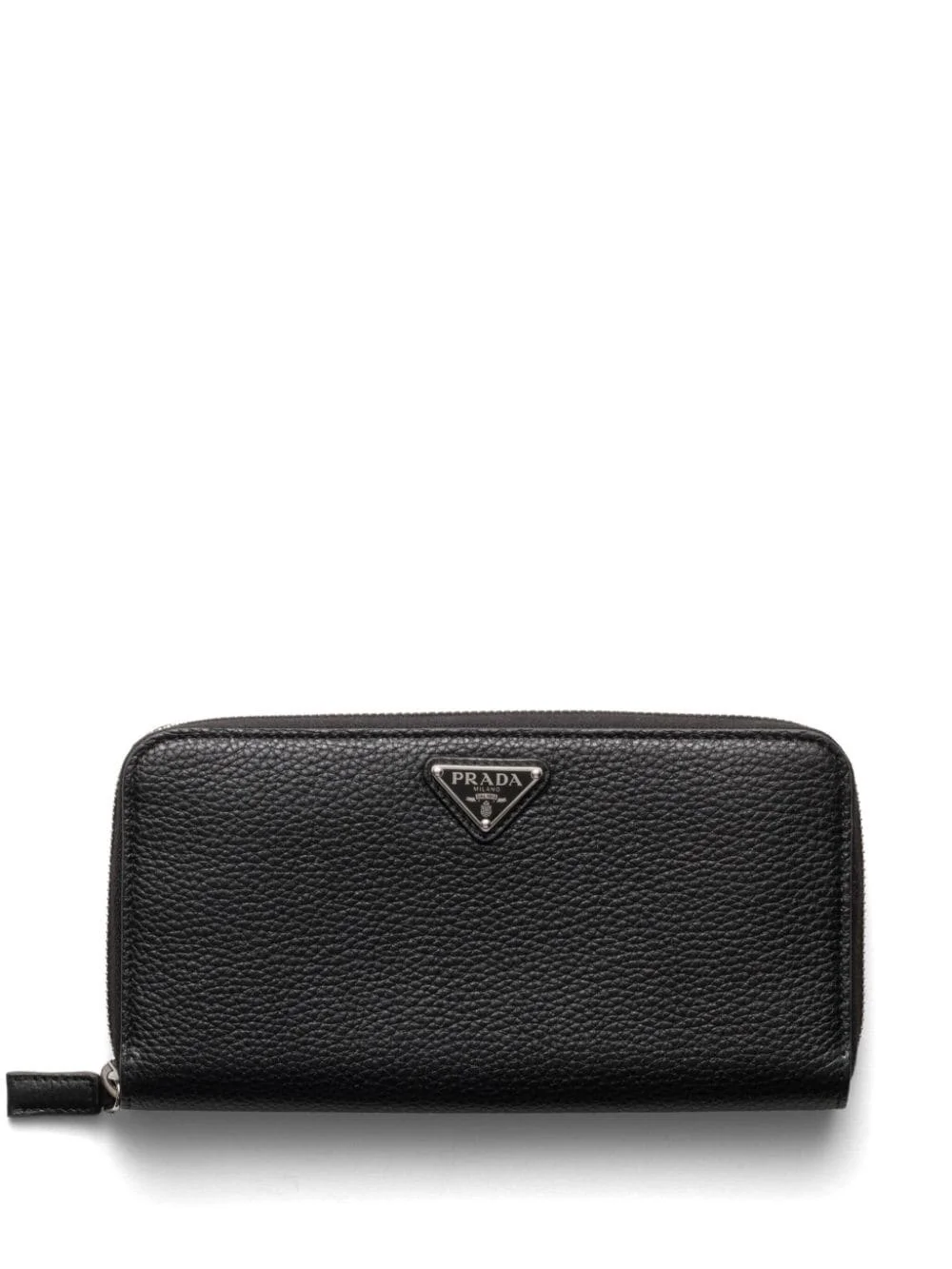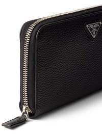 leather wallet Highlights - Black - Leather - Grained texture - All-around zip fastening - Enamel triangle logo - Partitioned compartment - Internal card slots - Internal zip-fastening pocket Composition Outer: Leather 100% Lining: Leather 100% SIZE & FIT Measurement LENGTH 7.87 in(20 cm) WIDTH 4.05 in(10.3 cm)