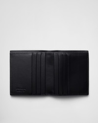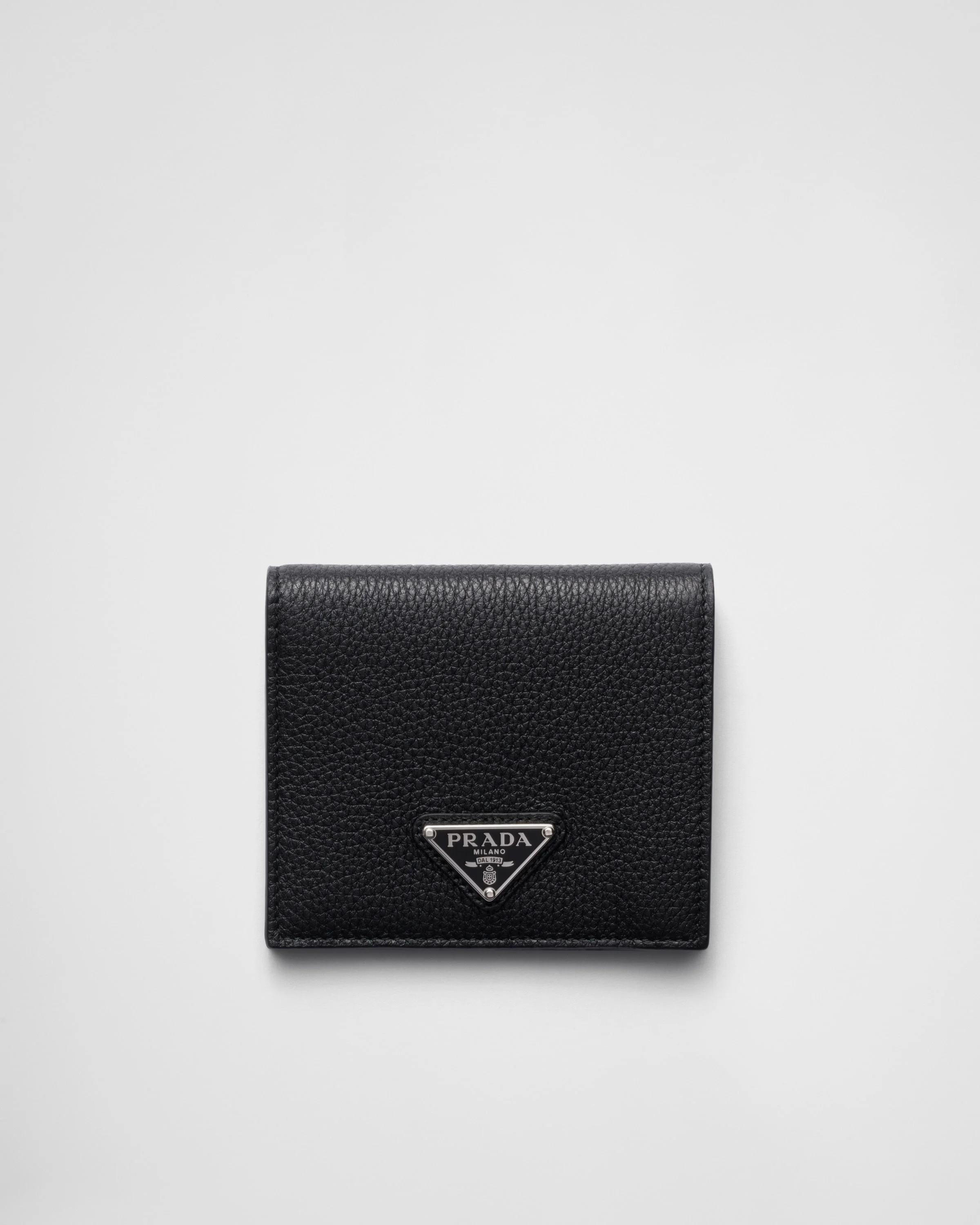 This leather wallet, which stands out for its sleek design, has eight card slots and one bill compartment. The enameled metal triangle logo completes the accessory with a distinctive touch. - Product code: 2MO004_2E54_F0002 - Enameled metal triangle logo - Eight card slots - One bill compartment - Moire and leather lining - Imported Height: 10cm Width: 9cm MATERIALS Main material: Calfskin