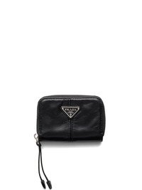 leather wallet Highlights - Black - Leather - Crinkled finish - All-around zip fastening - Enamel triangle logo - Partitioned compartment Composition Outer: Leather 100% SIZE & FIT Measurement LENGTH 4.33 in(11 cm) WIDTH 2.95 in(7.5 cm)