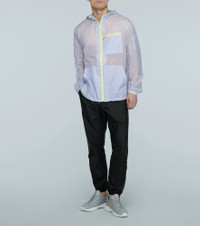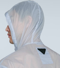 A selection from the exclusive Prada x Mytheresa Men capsule collection, this Prada semi-sheer technical hooded jacket is defined by its pale blue color and contrasting yellow zips. Product Details - exclusive to mytheresa.com - Made in Italy - Pockets: zipped pocket, slit pockets - Designer color name: Perla+Pompelmo - Material: 100% polyamide - Closure: zipped front - Care instructions: hand wash - Item number: P00438931 Size & Fit - True to size - Semi-sheer - Designed for a loose fit - Falls to the hip - The model in the picture is 185cm-6'1" and wearing a size IT 48