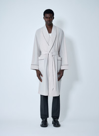 Belted coat with accent trims. - V neck - Self-tie fastening at front - Long sleeves - Side patch pockets - 65% Technical Fabrication Blend, 35% Cotton. Dry clean - Color: Beige - Code: VT8054 17DJ F0A08