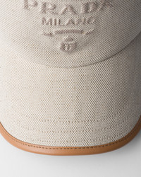 This classic sports-inspired baseball cap is made of a linen blend fabric with leather trim. The tonal lettering logo in relief embellishes the accessory with a distinctive touch. - Product code: 2HC179_ZPX_F0018 - With leather trim - Embroidered logo - Cotton lining - Imported MATERIALS Main material: Cotton linen