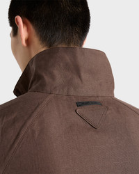 This linen jacket has a light silhouette defined by sleek lines and details. The sporty-chic garment is completed with the iconic tonal fabric triangle logo. - Product code: SGC874_15FS_F0192_S_OOO - Regular fit - Stand-up collar - Raglan sleeve - Zipper closure - Visible zipper pockets - Ribbed knit cuff - Regular shoulder - Straight ribbed knit hem - Unlined - Fabric triangle logo and sartorial logo label - Imported - The model is 189 cm tall and wears a size 48 Height: 65cm MATERIALS Main material: 100% linen