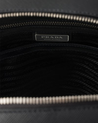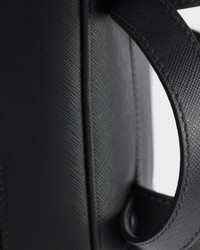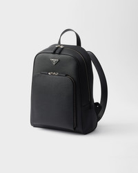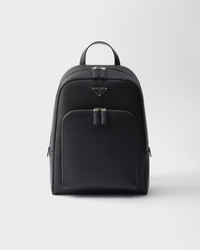 This Saffiano leather backpack with a contemporary, minimalist design is characterized by its roomy silhouette enriched with an external zipper pocket. The enameled metal triangle logo completes the versatile and refined design. - Product code: 2VZ102_9Z2_F0002_V_DOO - Flat leather handle - Adjustable woven nylon tape and leather harness straps - Enameled metal triangle logo on the front - Zipper closure - External zipper pocket - Interior with zipper pocket and patch pockets - Logo-print Re-Nylon lining - Imported Height: 40.5cm Width: 28cm Length: 12cm MATERIALS Main material: Calfskin