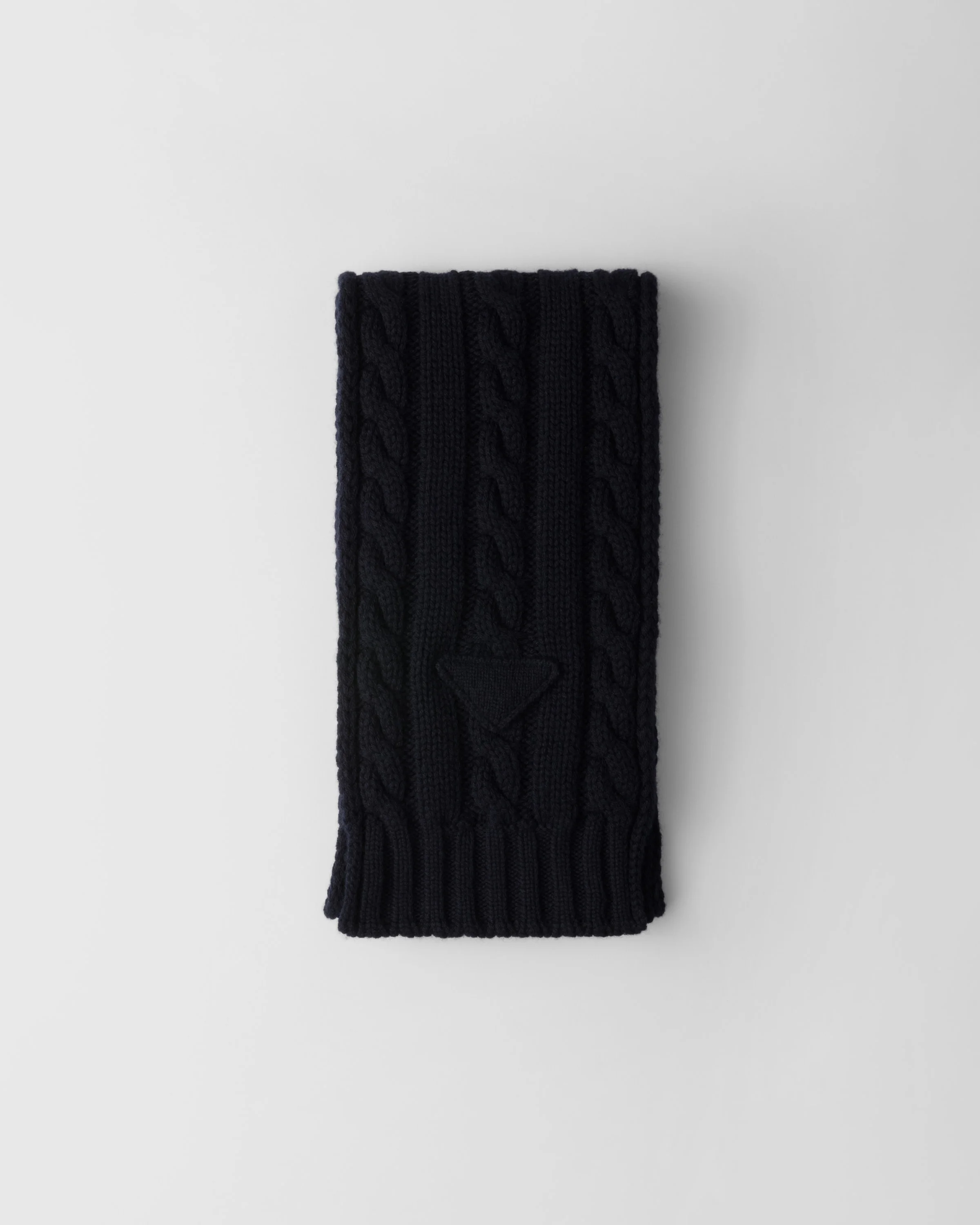 The iconic geometric shape of the knit triangle logo adds its signature touch to this cashmere scarf embellished with a cable knit motif. - Product code: UMS491_15N3_F0008_S_OOO - Cable-knit - Knit triangle logo - Imported Height: 160cm MATERIALS Main material: 100% cashmere