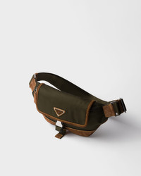 Suede details add a refined touch to this sporty belt bag. This accessory made of Re-Nylon combines a functional, versatile design with distinctive, iconic notes. For sustainable care to preserve the product's characteristics and reduce microfiber shedding, we recommend not washing the item too often. Let the product air out after every use and have it dry cleaned at a specialized ecological dry cleaners. - Product code: 2VH176_384_F041O_V_OBF - Adjustable woven tape shoulder strap. Maximum length 100 cm - Minimum length 58 cm - Enameled metal triangle logo on the flap - Flap closure with side-release buckle - Back zipper pocket - Re-Nylon lining - Imported Height: 15cm Width: 18cm Length: 5cm MATERIALS Main material: Recycled polyamide