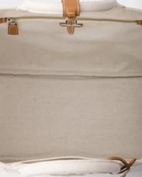 Reinterpreted with a sleek, sophisticated style, this linen blend bag has a light, versatile, roomy silhouette. The iconic style is embellished with leather trim that reveals the refined, artisan essence of the accessory. - Product code: 2VG131_2CX9_F0018_V_OOO - Visible stitching - Canvas handles - Detachable, adjustable woven tape shoulder strap. Maximum length 108 cm - Minimum length 68 cm - Maximum drop 48 cm - Minimum drop 26 cm - Embroidered logo on the front and lettering logo printed on the leather pendant - Snap closure - Removable leather key ring - Interior with zipper and patch pocket - Linen blend lining - Metal purse feet - Imported Height: 30cm Width: 43cm Length: 20cm MATERIALS Main material: Cotton linen