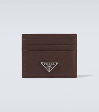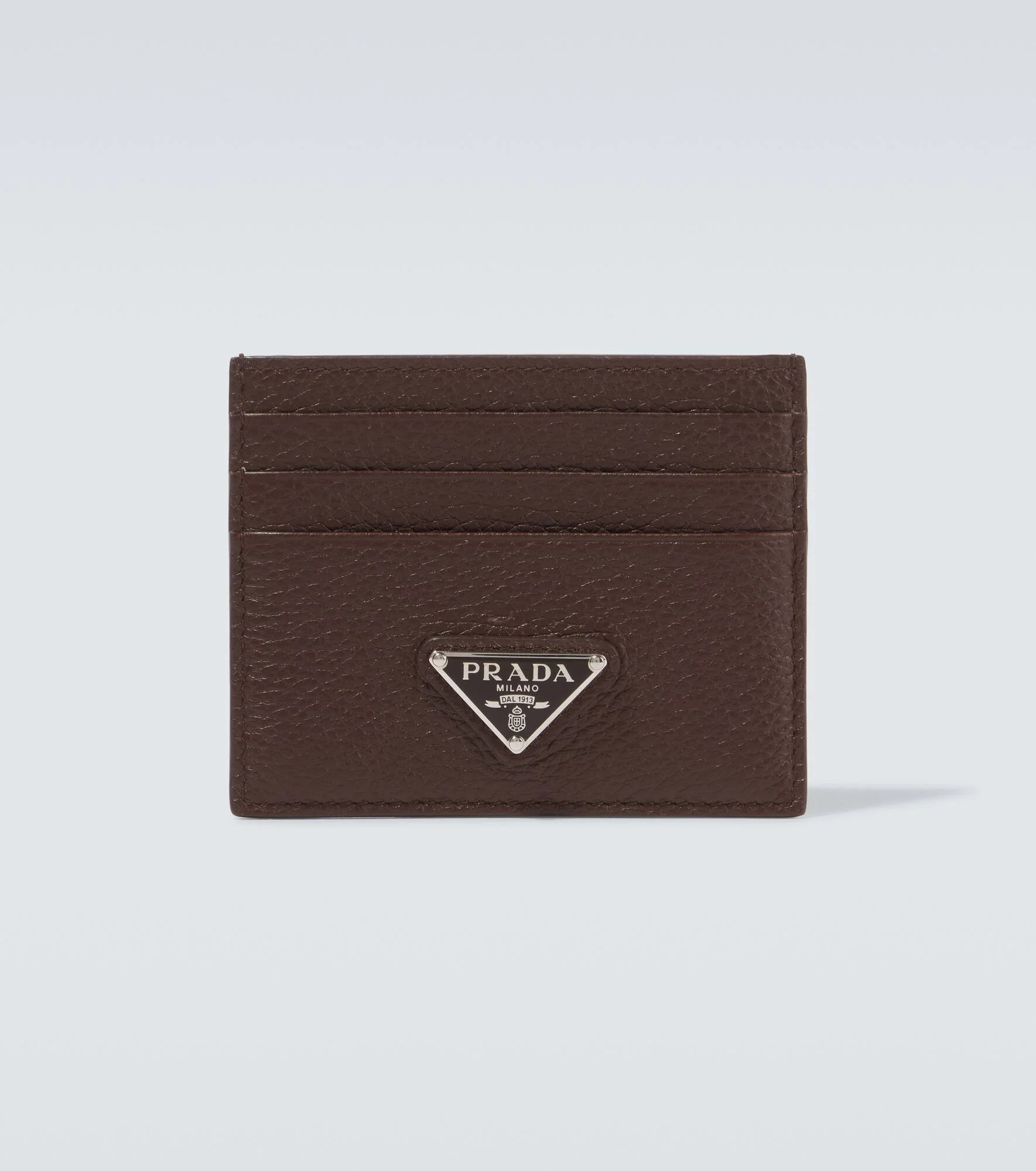 Crafted from supple leather, this card holder from Prada features a sleek silhouette with six card slots and an internal pocket. The design is complete with the brand's enameled metal triangle logo for a signature touch. Product Details - Material: calf leather - Lining: calf leather - Made in Italy - Designer color name: Bruciato - Item color: brown - Card slots - Hardware color: silver - Item number: P01060656 Size & Fit - Height 8cm-3" - Width 10cm-4"