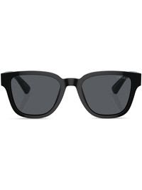 logo-lettering D-frame sunglasses Made from acetate, these black Prada sunglasses boast a sleek D-frame, lending a classic, timeless feel. They are punctuated with logo lettering at the temples. Highlights - Black - Acetate - Logo lettering at the arm - D-frame - Grey tinted lenses - Straight arms - Curved tips - These glasses come with a protective case. Composition Acetate 100%