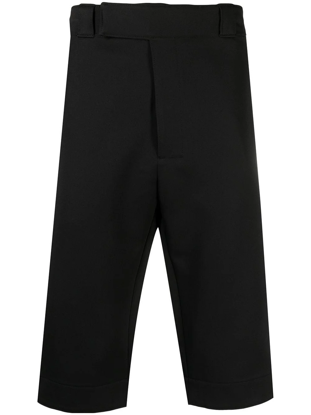 logo patch cropped trousers Here's the long and 'short' of it. We know these cropped Prada trousers are going to look great on you and you do too. What are you waiting for? Composition Lining: Cotton 100% Outer: Polyester 100% SIZE & FIT Model measurements Height 6 ft 2 in(1.87 m) Bust/Chest 38.18 in(97 cm) Hips 36.61 in(93 cm) Waist 29.13 in(74 cm) FittingInformation This piece fits true to size. We recommend you get your regular size Cut for a slim fit Made with a mid-weight fabric