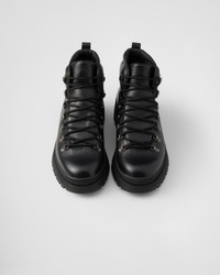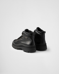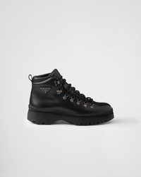 Combining innovation and versatility, these Brixxen booties pair contemporary, functional lines with a rubber sole from the archive, an expression of the brand's technological excellence and artisan know-how. - Product code: 2TE201_070_F0002_F_G000 - Metal hook and loop fastening - Enameled metal triangle logo on the upper - Prada Milano logo embossed on the tongue - Rubber sole lightened by the shell construction that covers part of the upper - Heel height 40 mm - Removable leather-covered insole - Imported MATERIALS Main material: Calfskin