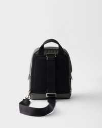 Crafted from Re-Nylon, this backpack features a lightweight compact design with a versatile style. In a perfect blend of Prada signature codes, the accessory is refined with Saffiano leather detailings which elevate the sporty, functional style. The enameled metal triangle logo adds an iconic touch. For sustainable care to preserve the product's characteristics and reduce microfiber shedding, we recommend not washing the item too often. Let the product air out after every use and have it dry cleaned at a specialized ecological dry cleaners. - Product code: 2VZ116_2DMG_F0414_V_OOO - Padded woven nylon handle - Adjustable nylon shoulder strap - Maximum length 105 cm - Minimum lenght 60 cm - Maximum drop 55 cm - Minimum drop 30 cm - Enameled metal triangle logo on the front - Zipper closure - One external zipper pocket - Interior with one zipper pocket and one patch pocket - Re-Nylon lining - Imported Height: 27cm Width: 20cm Length: 8cm MATERIALS Main material: Recycled polyamide