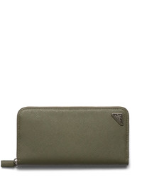 logo-plaque Saffiano leather wallet Highlights - Olive green - Saffiano leather - Enamel triangle logo - All-around zip fastening - Internal zip-fastening pocket - Internal card slots - Internal slip pocket Composition Outer: Leather 100% SIZE & FIT Measurement LENGTH 7.87 in(20 cm) WIDTH 3.93 in(10 cm)