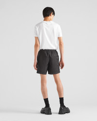 This swimsuit with a sleek design is made of innovative Re-Nylon, a sustainable fabric produced from recycled, purified plastic materials collected in the ocean. The enameled metal triangle logo adds an iconic note to the style accompanied by a coordinated pouch. For sustainable care to preserve the product's characteristics and reduce microfiber shedding, we recommend not washing the item too often. Let the product air out after every use and have it dry cleaned at a specialized ecological dry cleaners. - Product code: UB333_1WQ9_F0002_S_221 - Elasticized waistband with drawstring - Enameled metal triangle logo - Mesh lining - Welt pockets - Re-Nylon pouch with enameled triangle logo - Imported - The model is 188 cm tall and wears a size 48 Height: 41cm MATERIALS Main material: 100% recycled polyamide