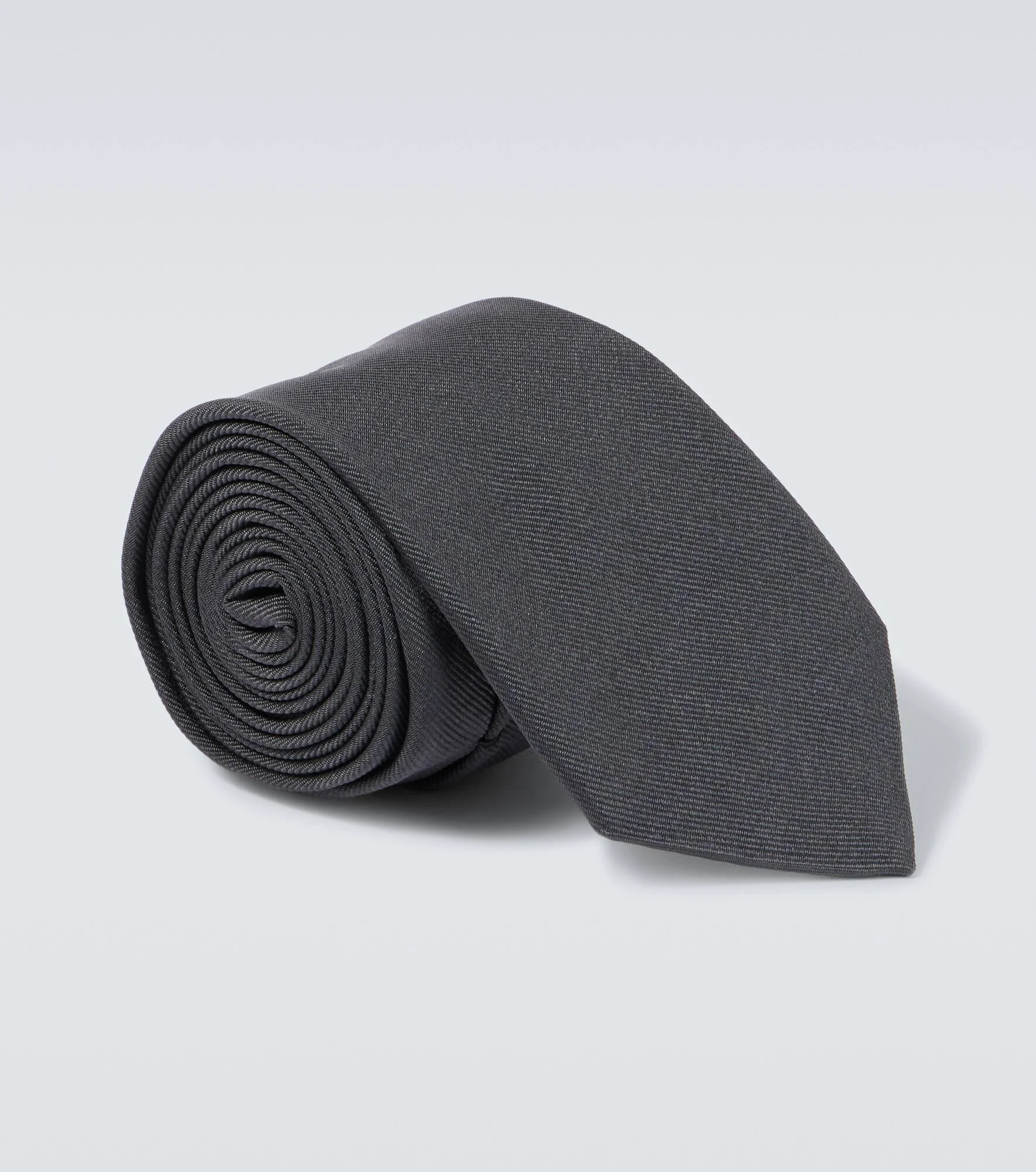 Prada showcases its expert sartorialism with this elegant tie. Made in Italy from pure silk, the piece is cut into a minimal design, complete with logo lettering at the front for a signature finish. Product Details - Material: 100% silk - Care instructions: dry clean - Made in Italy - Designer color name: Grey - Item color: gray - Item number: P01086400 Size & Fit - Max. width 7cm-3"