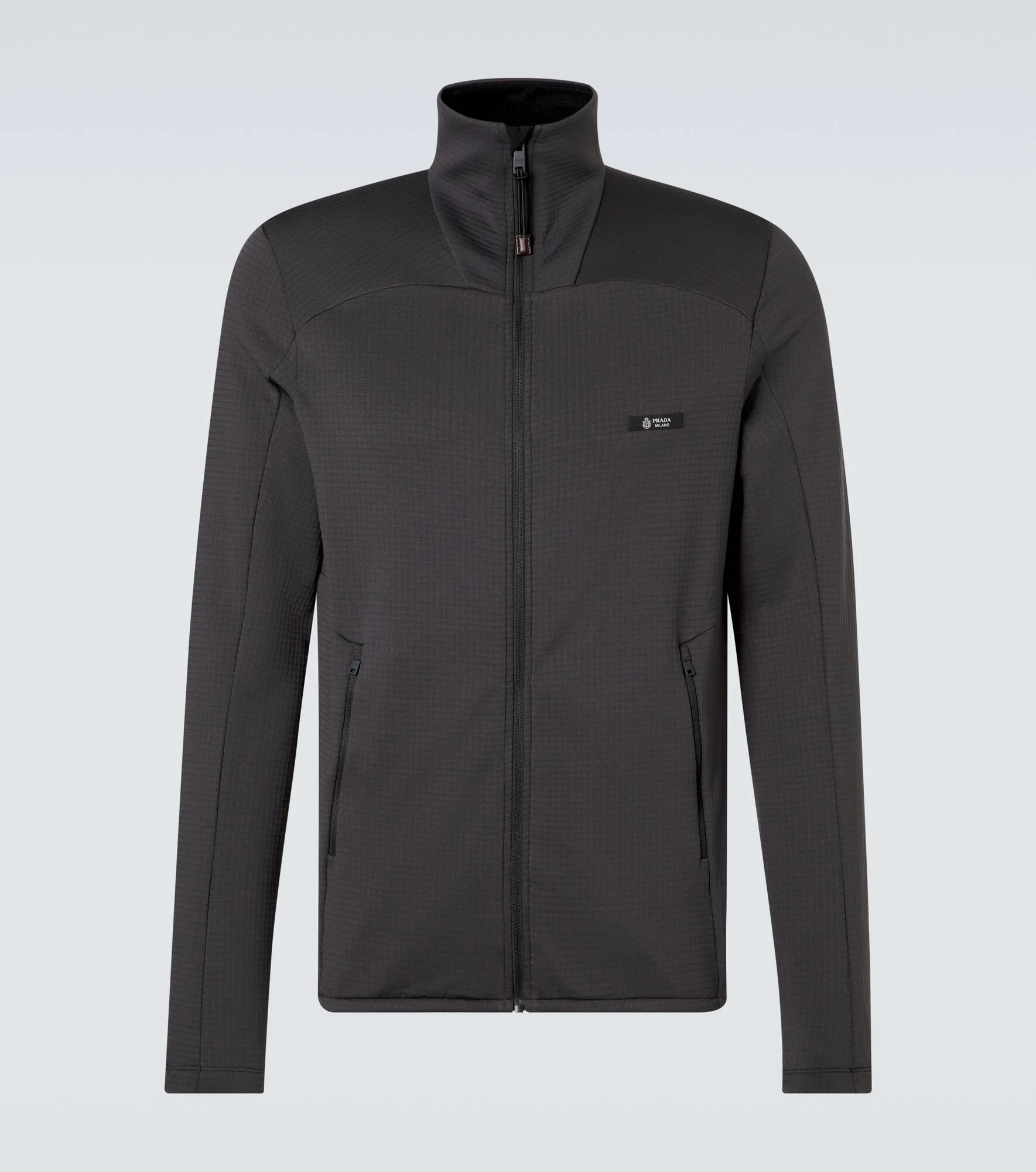 Strike a perfect balance between refinement and functionality with this track jacket from Prada. Made from a technical fabric, this style is complete with zipped pockets and subtle logo detailing at the chest. Product Details - Material: 91% polyester, 9% elastane - Care instructions: hand wash - Made in Italy - Color: grey - Designer color name: Grey - Item color: gray - Contains non-textile parts of animal origin - Pockets: zipped pockets - Closure: zipped front - Item number: P01148122 Size & Fit - True to size - Slim fit - Slightly stretchy fabric - Falls to the hip - Height of model is 189cm-74.5" and wears a size L
