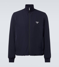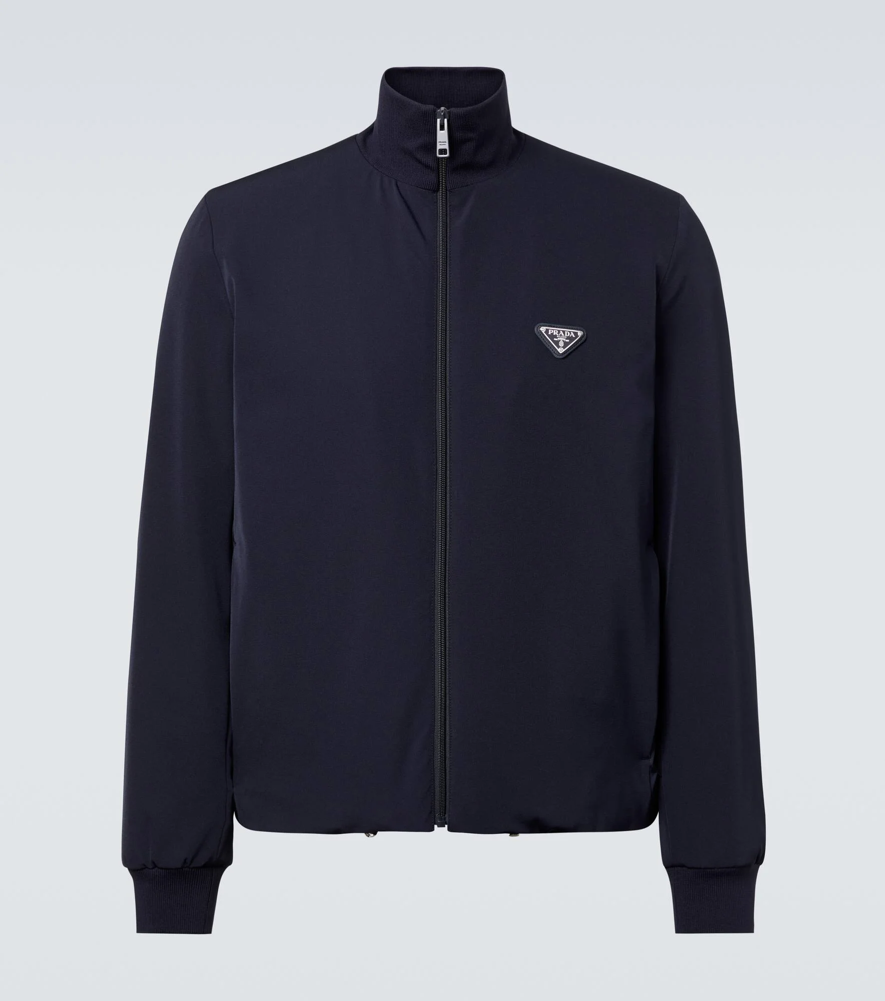 Prada takes Italian heritage into a distinctly modern direction with a streamlined and fashion-forward approach. Featuring the iconic triangle logo, this track jacket is complete with zipped pockets and drawstring detailing at the hemline. Product Details - Material: 89% polyester (recycled), 11% elastane - Care instructions: dry clean - Made in Italy - Designer color name: Bleu - Item color: blue - Material II: 100% polyamide (recycled) - Material III: 77% polyamide (recycled), 20% polyamide, 3% elastane - Lining: 100% polyamide (recycled) - Filling: 55% polyester (recycled), 45% polyester - Contains non-textile parts of animal origin - Cuff: ribbed - Pockets: zipped pockets - Closure: zipped front - Drawstring at the hem for adjustable fit - Item number: P01060815