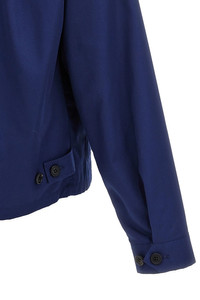 cod. SGC629SOOO1480F0216 'Divisa' cotton blend jacket with vintage-effect logo print on the front, zip closure, pockets, long cuffed sleeves. Color: Blue Size & Fit: true to size fit Composition: 65% polyester, 35% cotton Made in: Italy