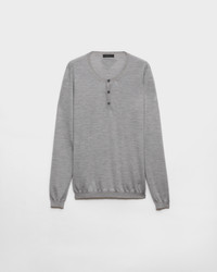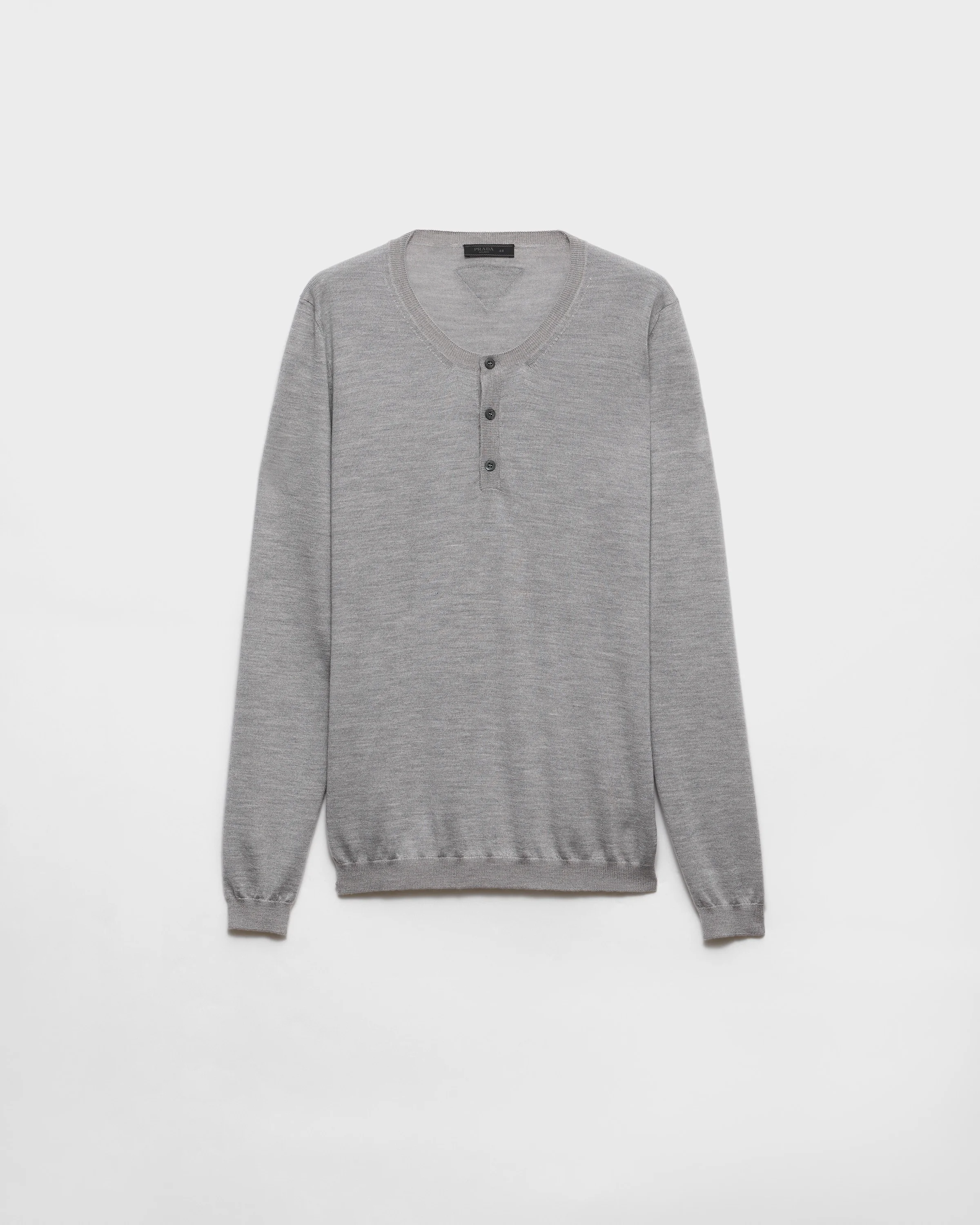 A precious blend of cashmere and silk adds a light touch and refined allure to this long-sleeved sweater with a simple design. The casual style is completed with the tonal triangle logo - Product code: UMF053_17EN_F0K44_S_OOO - Plain knit - Regular fit - Ribbed knit cuffs and hem - Fabric triangle logo - Sartorial label - Three button front closure - Imported - The model is 187 cm tall and wears a size 48 Height: 70cm MATERIALS Main material: 30% silk 70% cashmere