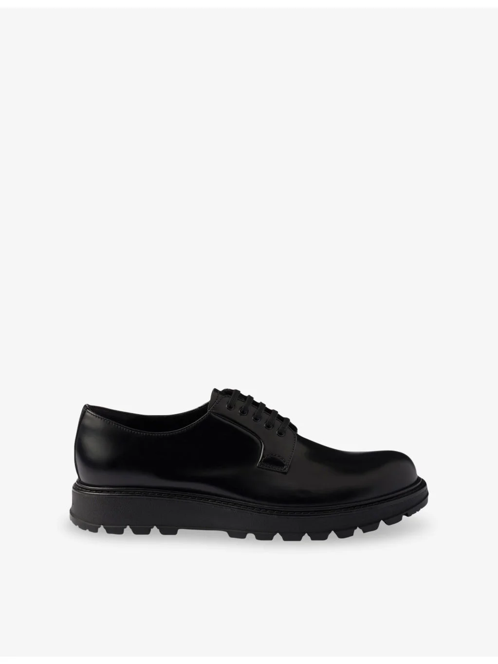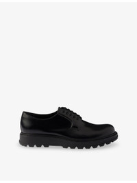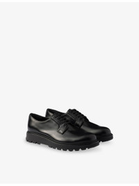 PRODUCT DETAILS - Prada leather Derby shoes - 100% leather - Lace-up fastening - Closed round toe, brushed upper, leather-covered insole, branding to back of midsole, lightweight lug tread - Specialist leather clean - Made in Italy - Upper: 100% leather - Lining: 100% leather - Sole: 100% rubber Ref: R04498574