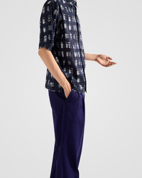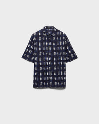 A modernist print featuring geometric elements and irregular lines animates this cotton shirt with an oversized silhouette, decorated with the emblematic tonal triangle logo. - Product code: UCS440_16TJ_F0021_S_OOO - "Madras" print - Oversized fit - Classic collar - Straight hem - Mother-of-pearl button closure - Fabric triangle logo - Imported - The model is 189 cm tall and wears a size 48 Height: 72cm MATERIALS Main material: 100% cotton