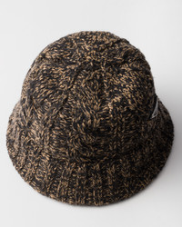 The bucket hat, an iconic Prada accessory, is made of melange wool embellished with the enameled metal triangle logo. - Product code: 2HC338_2DZJ_F0782 - Enameled metal triangle logo - Cotton lining - Imported MATERIALS Main material: Cotton viscose
