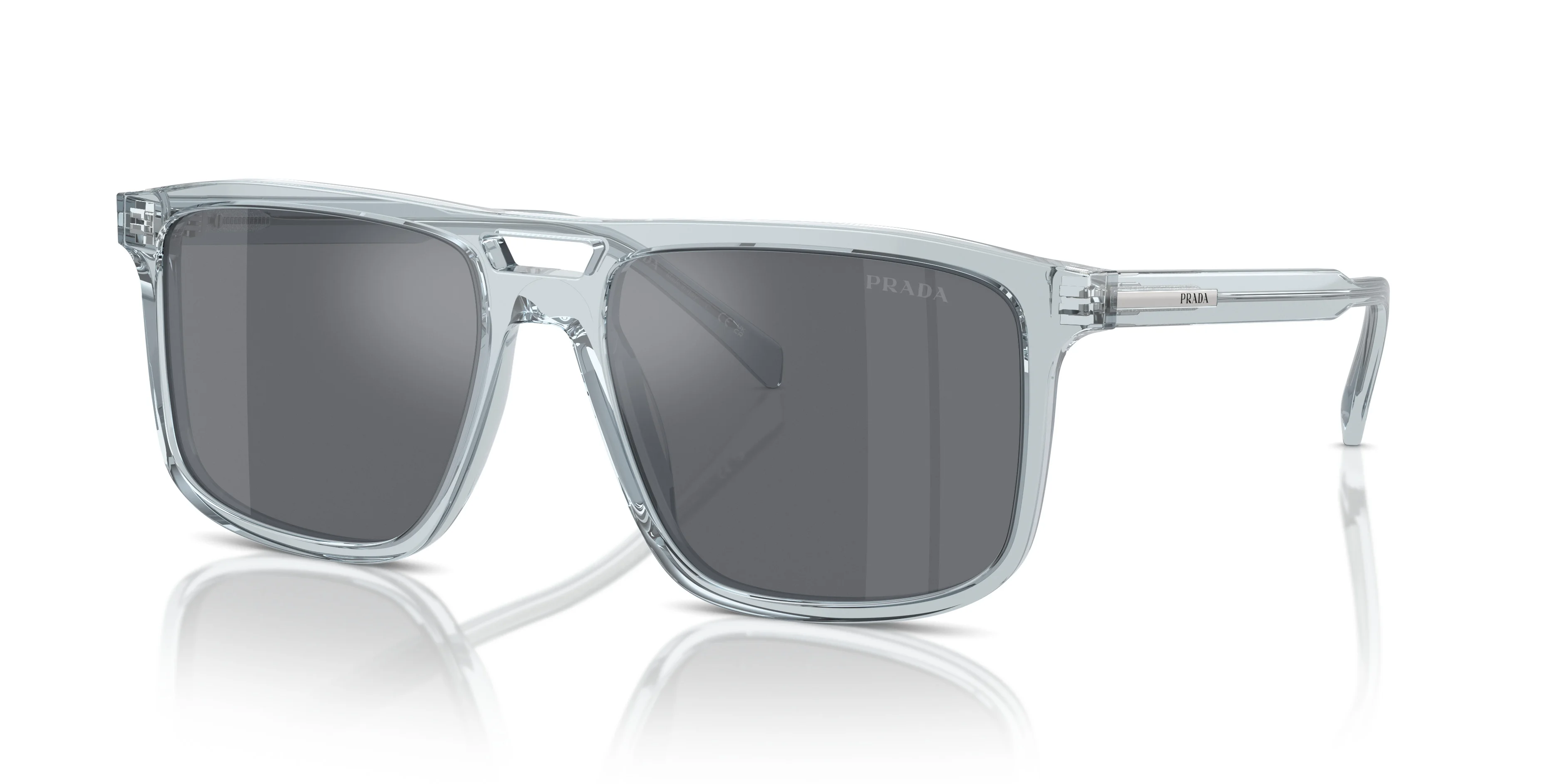 Discover Prada PR A22S sunglasses, a perfect blend of timeless style and contemporary flair. The solid dark grey flash silver lenses are complemented by the polished transparent azure frame crafted from premium acetate material. These rectangle-shaped shades exude sophistication and elegance, making them an ideal choice for those seeking both functionality and fashion-forward aesthetics. Elevated by their mirror treatment, these sunglasses epitomize luxury and allure in equal measure. PRODUCT INFORMATION STYLE PR A22S MODEL CODE PR A22S 19T175 58-18 MADE IN Italy FRAME DETAILS COLOR Blue MATERIAL Acetate SQUARE Rectangle LENS DETAILS COLOR Dark Grey Flash Silver MATERIAL Polyamide TECHNOLOGY Grey LENS PROTECTION INDEX 3N