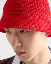 The bucket hat, an iconic accessory with urban style, is reinterpreted for the new season with a light crochet design. The unique texture made by hand gives the hat sophisticated, contemporary style. - Product code: 2HC137_2HGN_F0011 - Enameled metal triangle logo - Imported MATERIALS Main material: Cotton viscose
