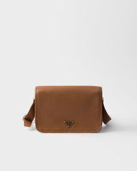 This refined and versatile shoulder bag with a sleek design is made of soft leather with a natural, tactile finish. Sleek details emphasize the simple silhouette enhanced with the iconic triangle logo. - Product code: 2VD075_2BBE_F0046_V_OOO - Adjustable leather shoulder strap with buckle. Maximum length 126 cm - Minimum length: 114 cm - Maximum drop 58 cm - Minimum drop 52 cm - Enameled metal triangle logo on the flap - Flap closure with magnet - One external zipper pocket - Back zipper pocket - Interior with zipper pocket and patch pocket - Re-Nylon lining - Imported Height: 20cm Width: 30cm Length: 9cm MATERIALS Main material: Calfskin