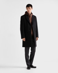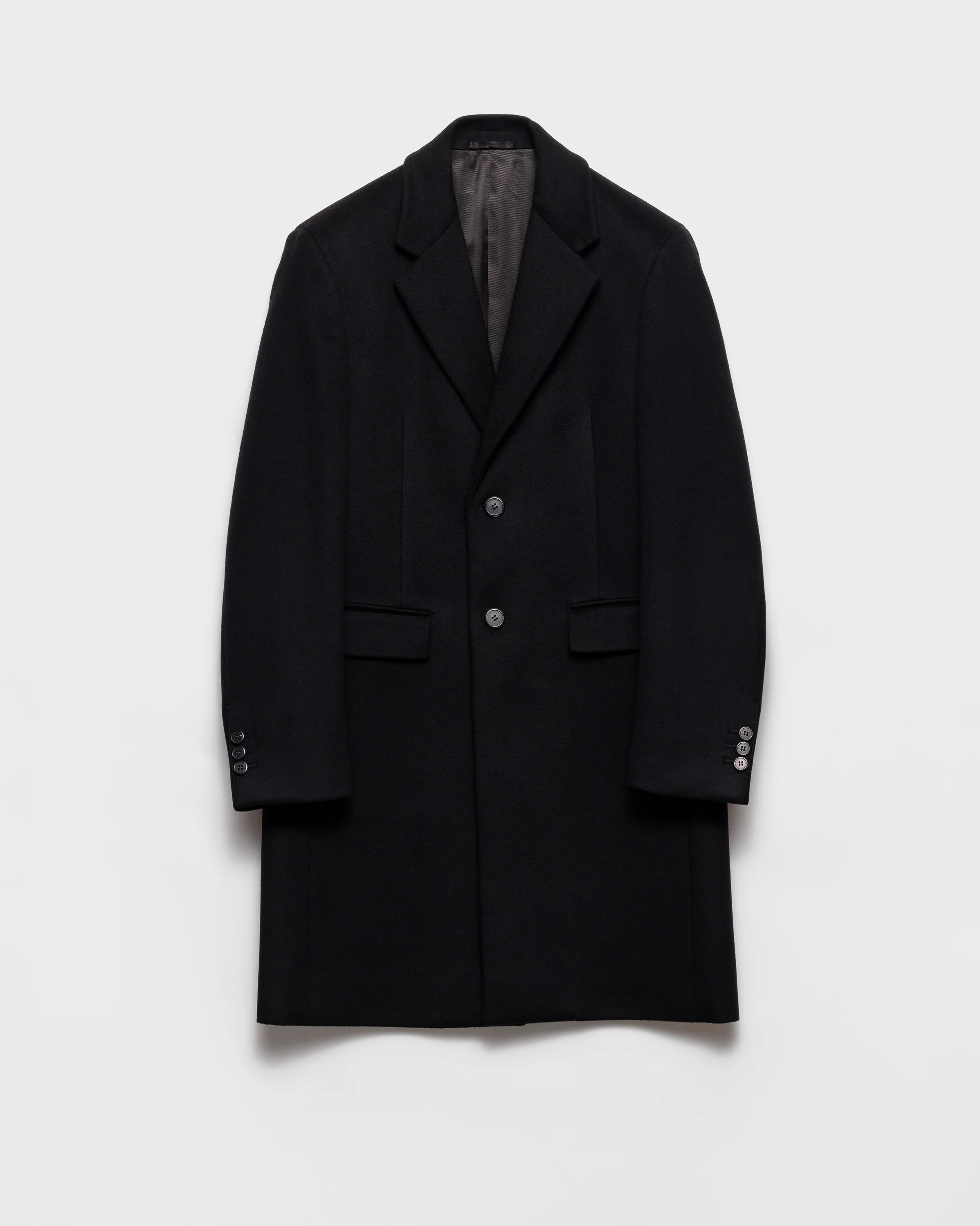 This wool blend coat has a single-breasted silhouette with versatile, classic elegance. Straight lines and sartorial details define the sophisticated garment completed with a tonal triangle logo. - Product code: UC486M_15LH_F0002_S_232 - Straight fit - Sartorial tailoring - Notch lapel - Center vent - Two button closure - Three-button cuffs - Flapped welt pockets - Lined garment - Knit triangle on the back - Imported - The model is 189 cm tall and wears a size 48 Height: 100cm MATERIALS Main material: 10% cashmere 90% virgin wool