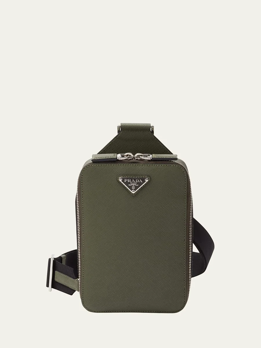 Prada shoulder bag in Saffiano leather Enameled metal triangle logo on the front Adjustable nylon tape and leather shoulder strap Zip closure Interior, one patch pocket Logoprint nylon lining 7.87"H x 5.51"W x 1.57"D Made in Italy