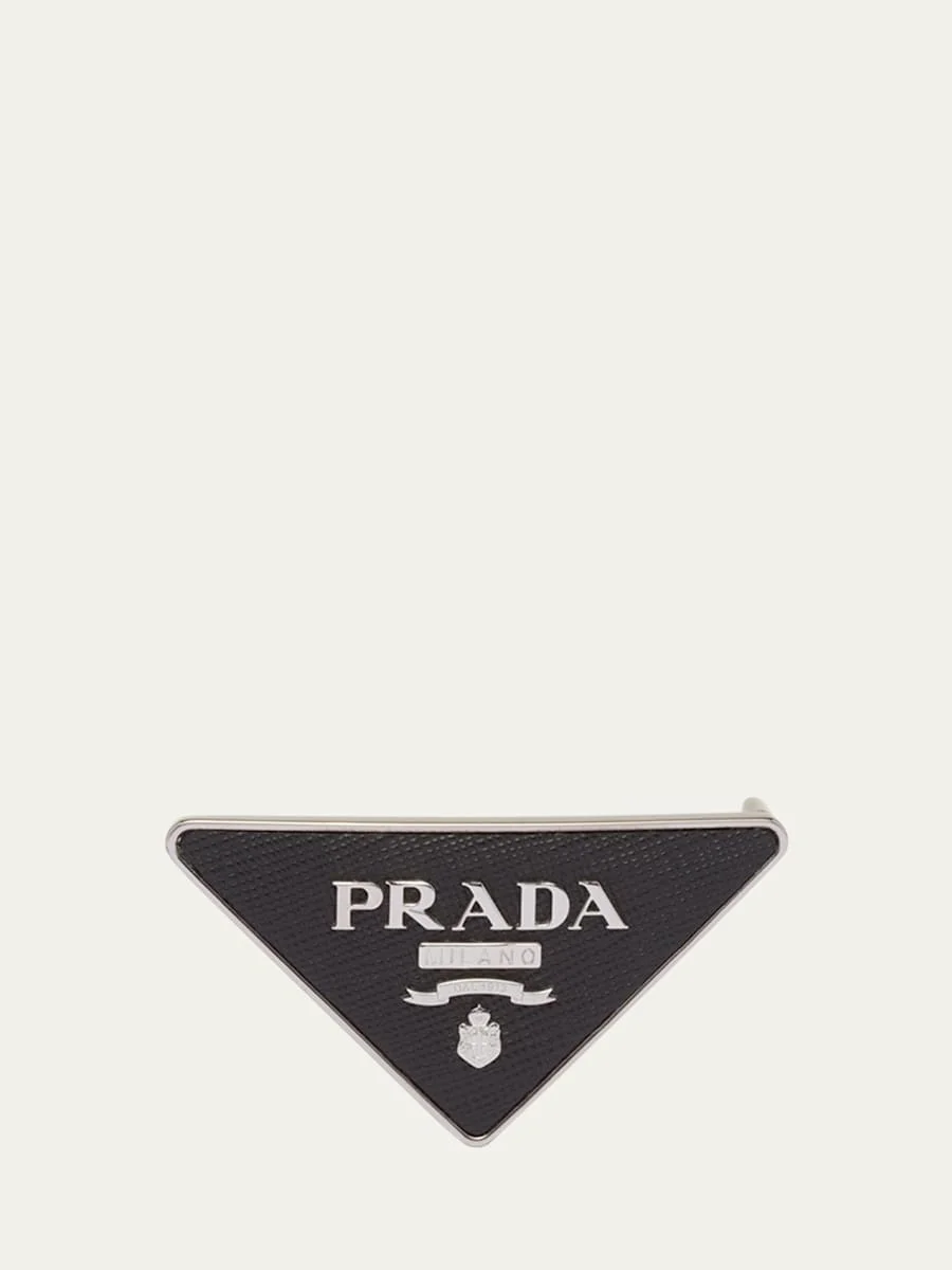 Prada belt buckle in Saffiano leather features the signature triangle logo motif Adjustable fit Belt sold separately Stainless steel Approx. 1.4"H Made in Italy