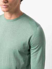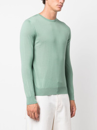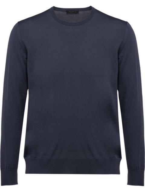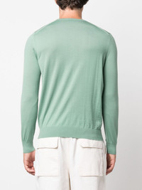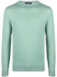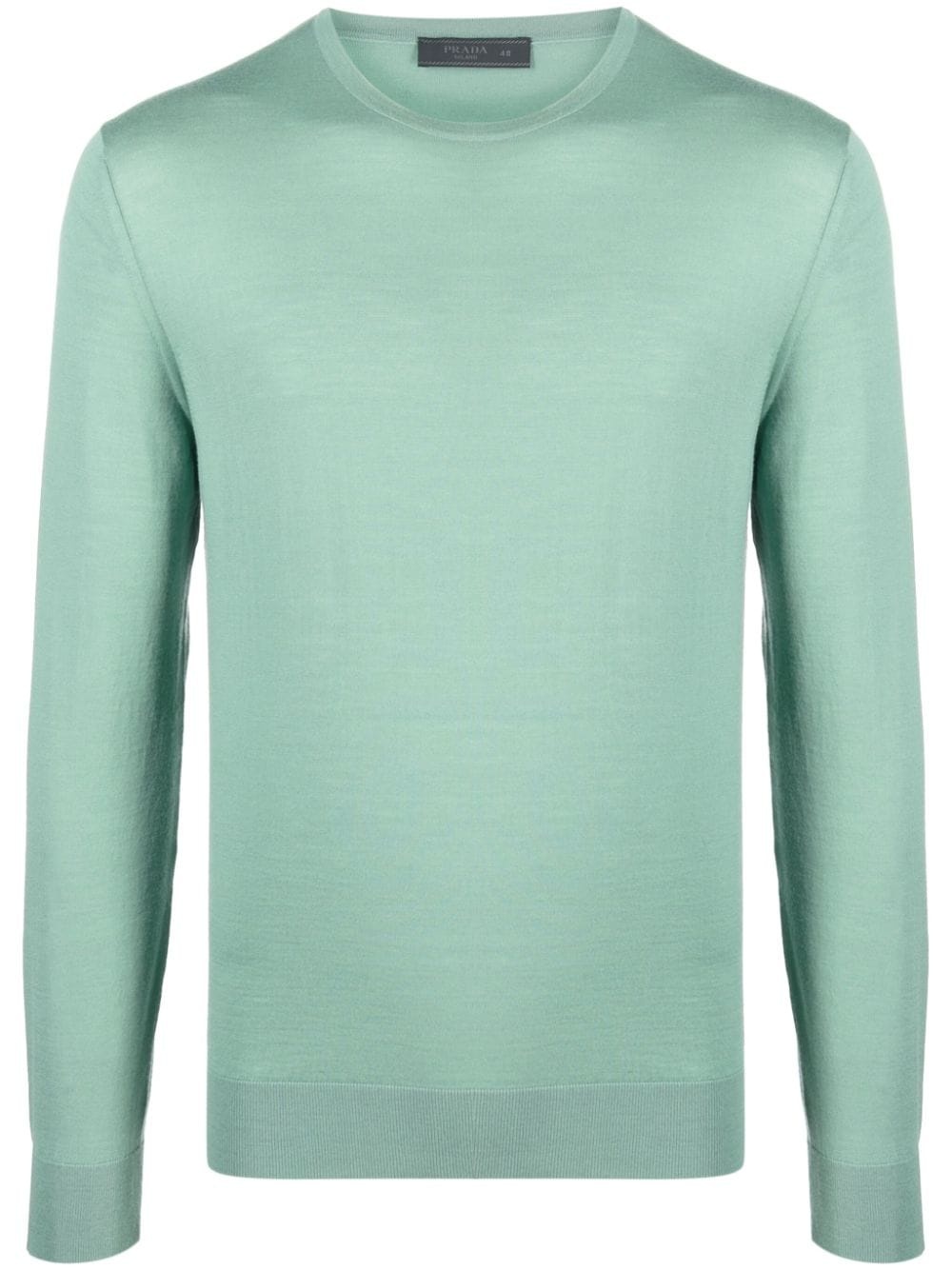 round neck virgin-wool jumper Prada can be trusted to bring quality fabrication and expert craftmanship to even basic garments. This Salvia green round neck jumper exemplifies that with an Italian virgin wool construction and ribbed-knit finished edge. This minimalist top embodies a simple and clean design – a theme that is common throughout the brand's collections. Highlights - Light green - Virgin wool - Round neck - Long sleeves - Straight hem Composition Virgin Wool 100% SIZE & FIT Model measurements Height 6 ft 2 in(1.88 m) Bust/Chest 37.79 in(96 cm) Hips 35.82 in(91 cm) Waist 29.92 in(76 cm) FittingInformation Designed for a relaxed fit, this piece allows for comfort and movement when worn Made with a midweight knit, this piece offers some stretch This piece fits true to size – take your usual size