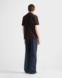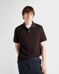 A sporty, casual silhouette defines this pique polo shirt with classic lines. The short-sleeved style with lustrous mother-of-pearl buttons is decorated with the iconic tonal triangle logo reinterpreted with a conceptual design. - Product code: UJN444_XGS_F0192_S_WEO - Short sleeve - Ribbed knit collar - Straight hem - Ribbed knit sleeve trim - Mother-of-pearl buttons - Conceptual triangle - Length: 70 cm, size: M - Imported - The model is 188 cm tall and wears a size 48 Height: 68cm MATERIALS Main material: 100% cotton