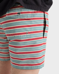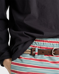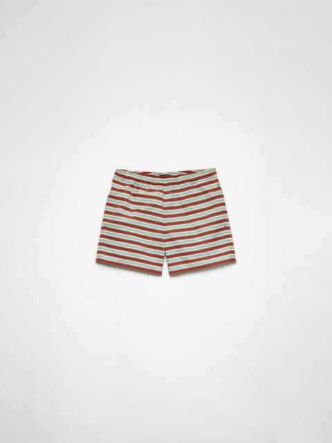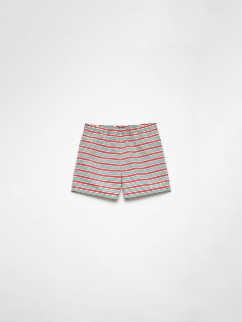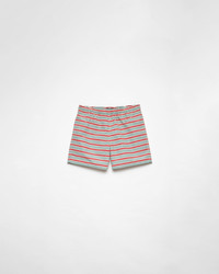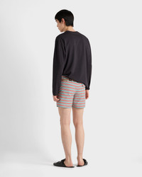 These technical fabric swim trunks are characterized by their sleek design completed with sporty yet refined details. A stripe motif with vintage charm enhances the style. For sustainable care to preserve the product's characteristics and reduce microfiber shedding, we recommend not washing the item too often. Let the product air out after every use and have it dry cleaned at a specialized ecological dry cleaners. - Product code: UB378_17N7_F0637_S_OOO - "Stripes" print - Straight fit - Elasticized waistband with drawstring - Mesh lining - Front welt pockets and back patch pockets - Re-Nylon pouch with triangle logo and sartorial logo label - Imported Height: 38cm MATERIALS Main material: 70% polyamide 30% recycled polyamide