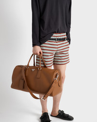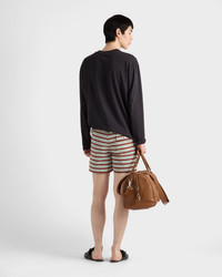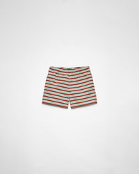 These technical fabric swim trunks are characterized by their sleek design completed with sporty yet refined details. A stripe motif with vintage charm enhances the style. For sustainable care to preserve the product's characteristics and reduce microfiber shedding, we recommend not washing the item too often. Let the product air out after every use and have it dry cleaned at a specialized ecological dry cleaners. - Product code: UB378_17N7_F0324_S_OOO - "Stripes" print - Straight fit - Elasticized waistband with drawstring - Mesh lining - Front welt pockets and back patch pockets - Re-Nylon pouch with triangle logo and sartorial logo label - Imported Height: 38cm MATERIALS Main material: 70% polyamide 30% recycled polyamide