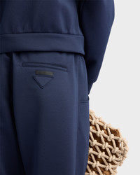 These pants with a contemporary, hybrid design define a new balance between elegance and sport. The garment made of technical fleece features sartorial lines and details that remain soft and comfortable, an expression of refined yet casual style. - Product code: UJP255_1TQX_F0008_S_OOO - Straight fit - Internal drawstring waistband - Straight hem - Fabric triangle logo and sartorial logo label - Length: 98 cm, Size: M - Angled front slash pockets - Imported - The model is 190 cm tall and wears a size 48 Height: 98cm MATERIALS Main material: 2% elastane 98% polyester