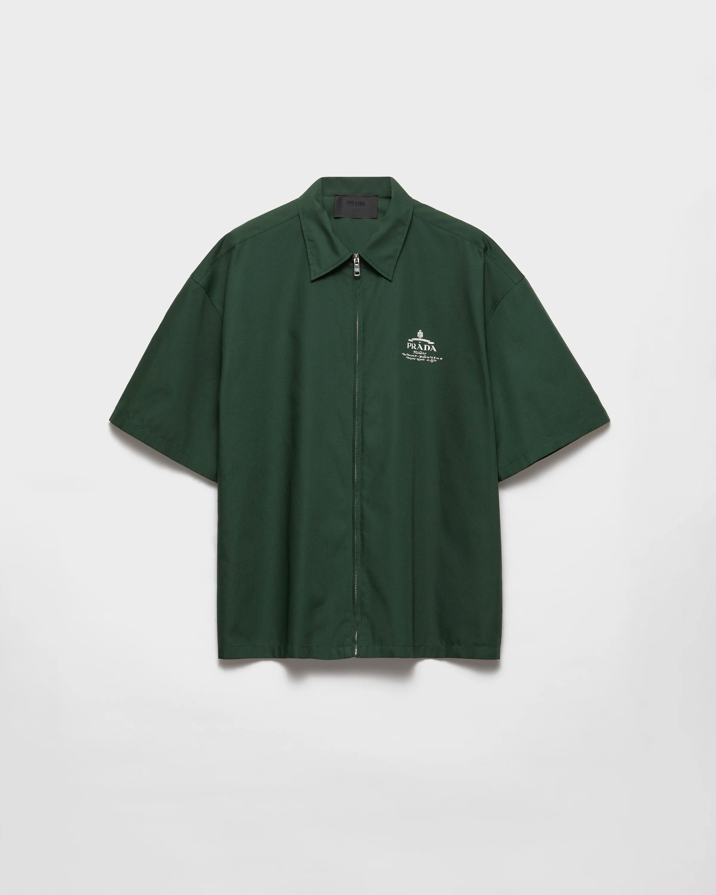 This technical cotton shirt has a boxy silhouette that reinterprets workwear details with a sleek aesthetic. The short-sleeved style characterized by a zipper closure is completed with a printed archive logo in a contrasting color. - Product code: SC781_1480_F0L76_S_OOO - Oversized fit - Classic collar - Straight hem - Zipper closure - Printed lettering logo on the front - Imported - The model is 188 cm tall and wears a size 48 Height: 72cm MATERIALS Main material: 35% Cotton, 65% Polyester
