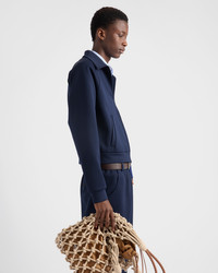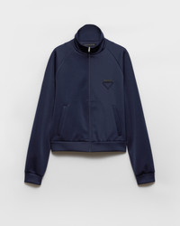 Clean lines and minimalist details define this technical fabric zipper jacket with a structured silhouette and stand-up collar. The triangle logo adds its signature touch to the sleek, contemporary design. - Product code: UJL37C_1TQX_F0008_S_OOO - Slim fit - Long sleeve - Stand-up collar - Straight hem - Zipper closure - Fabric triangle logo and sartorial logo label - Welt pockets - Length 60 cm, Size: M - Imported - The model is 190 cm tall and wears a size 48 Height: 60cm MATERIALS Main material: 2% elastane 98% polyester
