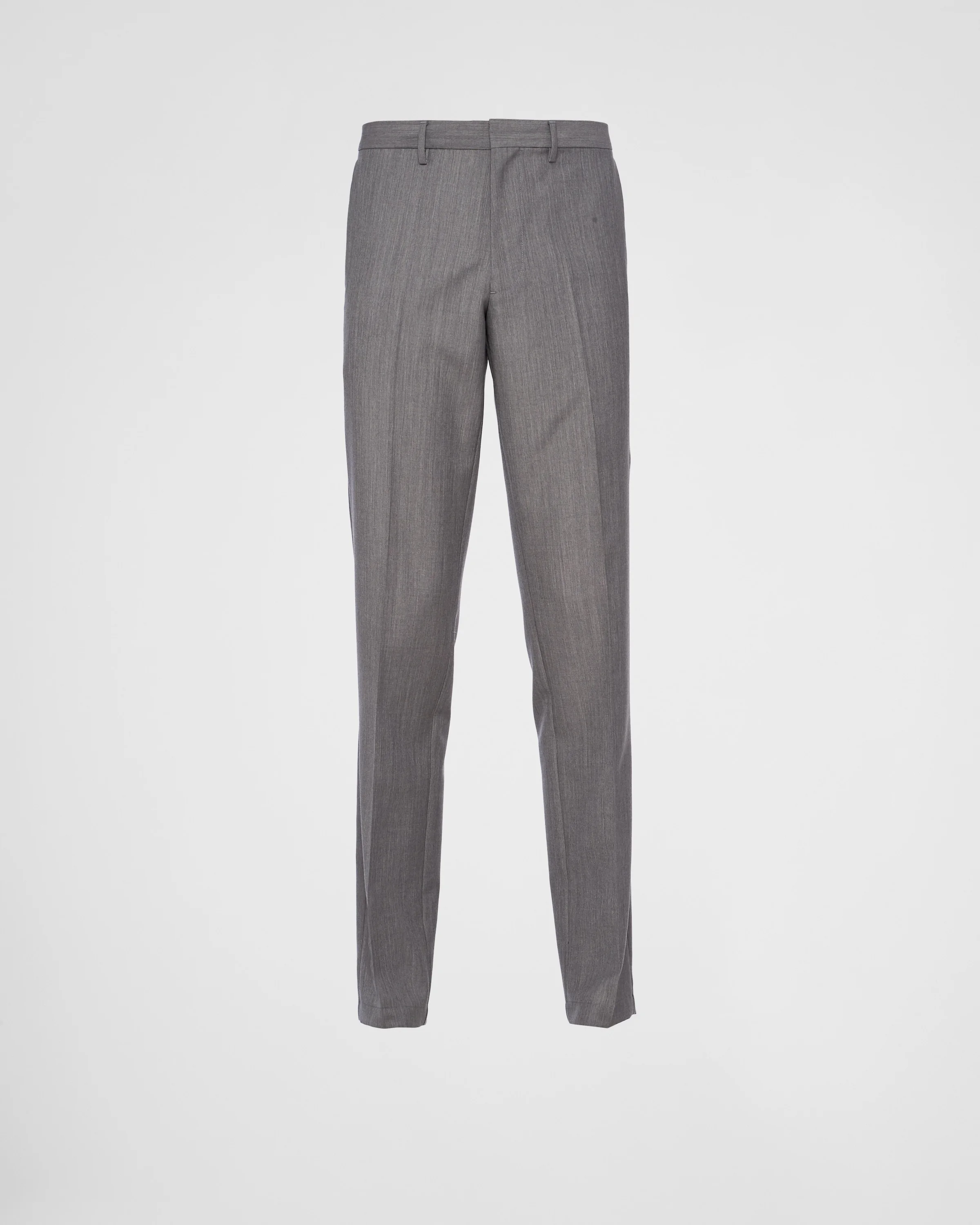 These slim-fit pants are made of soft mohair wool. With their angled slash pockets and ironed pleat, they have a sophisticated look. The fabric triangle logo decorates the garment on the back. - Product code: SPH299_13C6_F0031_S_231 - Slim fit - Drawstring waistband - Hidden zipper fly with hook - Angled front slash pocket - Buttoned welt pockets on the back - 20 cm hem width - Fabric triangle logo on the back - Imported Height: 110cm MATERIALS Main material: 37% mohair 63% virgin wool