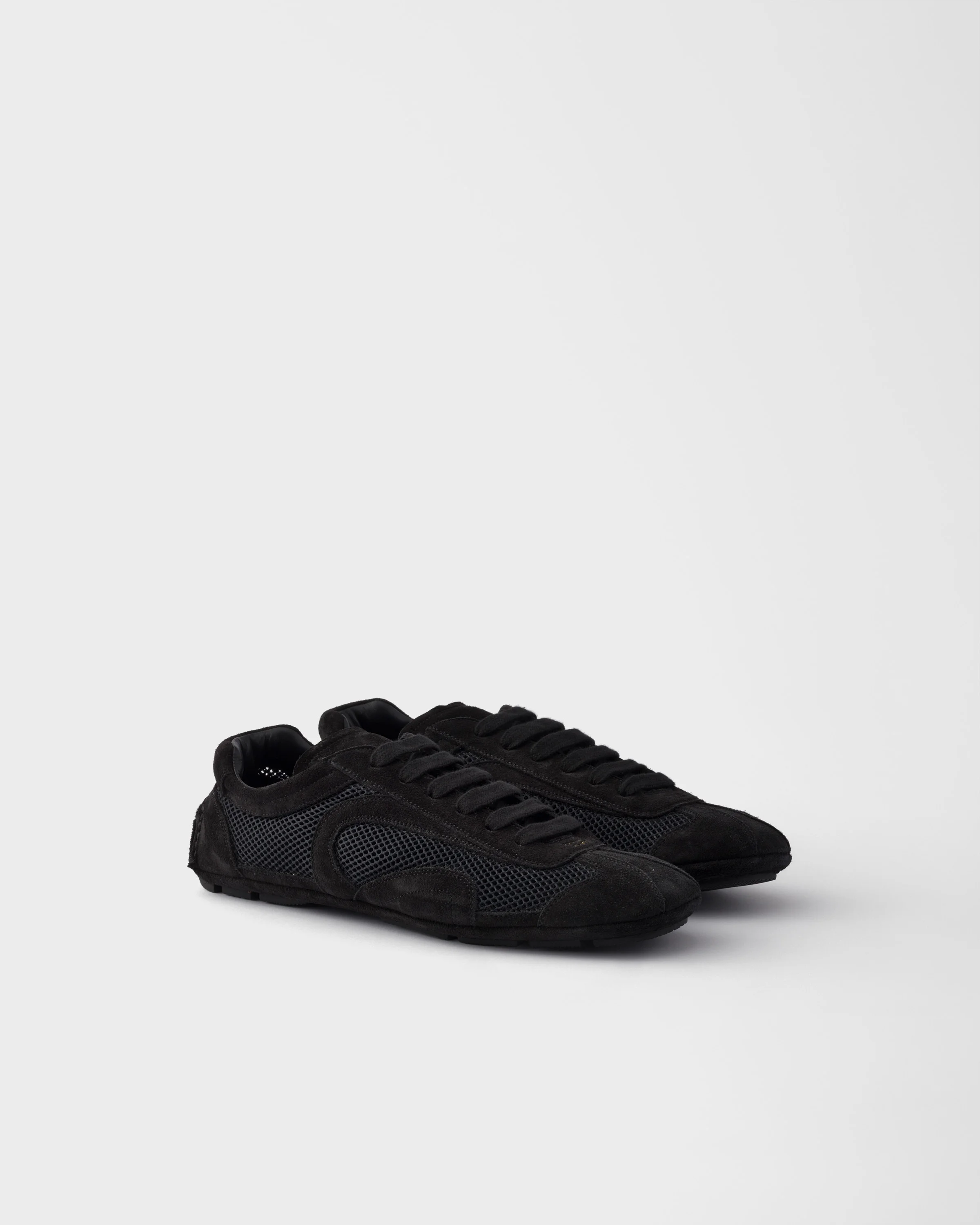Presented in 2005 for the Linea Rossa collection, Montecarlo sneakers combine style and comfort in a sophisticated and innovative design. In this new interpretation, the footwear returns with an upper in suede and mesh. The soft, flexible silhouette inspired by driving shoes is characterized by the deconstructed soles that give the shoe a light look and sleek aesthetic. - Product code: 4E1165_3D8C_F0002_F_G001 - With laces - Upper with sporty stitching - Prada Milano logo on the upper - Lightweight and flexible rubber sole characterized by protruding lugs with a patterned tread - Sole height: 5 mm - Removable leather-covered insole - Imported MATERIALS Main material: Calfskin