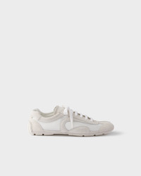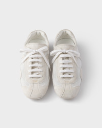 Presented in 2005 for the Linea Rossa collection, Montecarlo sneakers combine style and comfort in a sophisticated and innovative design. In this new interpretation, the footwear returns with an upper in suede and mesh. The soft, flexible silhouette inspired by driving shoes is characterized by the deconstructed soles that give the shoe a light look and sleek aesthetic. - Product code: 4E1165_3D8C_F0009_F_G001 - With laces - Upper with sporty stitching - Prada Milano logo on the upper - Lightweight and flexible rubber sole characterized by protruding lugs with a patterned tread - Sole height: 5 mm - Removable leather-covered insole - Imported MATERIALS Main material: Calfskin