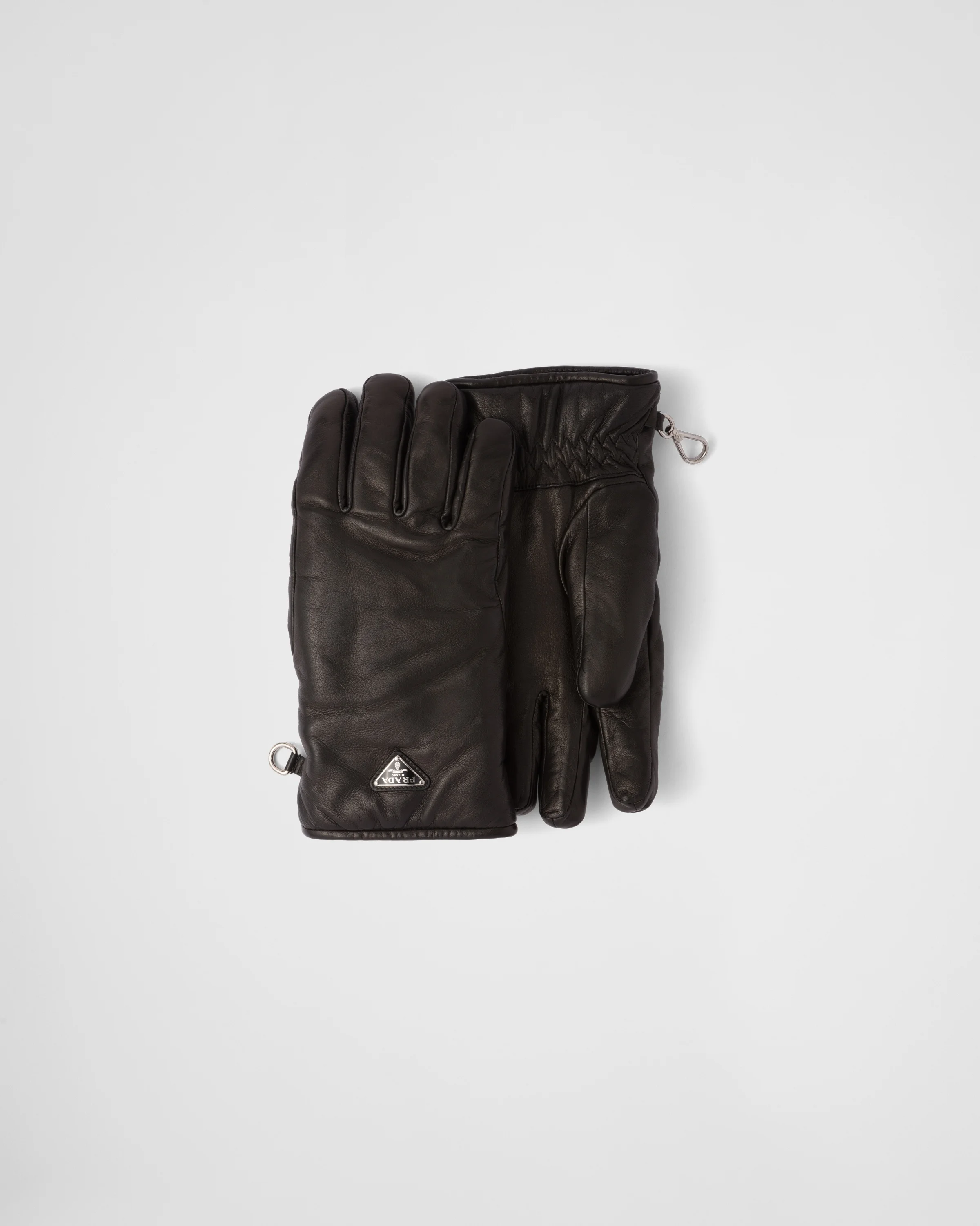 This nappa leather gloves with a warm pile lining are characterized by their elegant allure and functional design. The sleek, classic style is decorated with the iconic enameled metal triangle logo. - Product code: 2GG179_038_F0002 - Enameled metal triangle logo - Fleece lining - Imported MATERIALS Main material: Lambskin