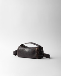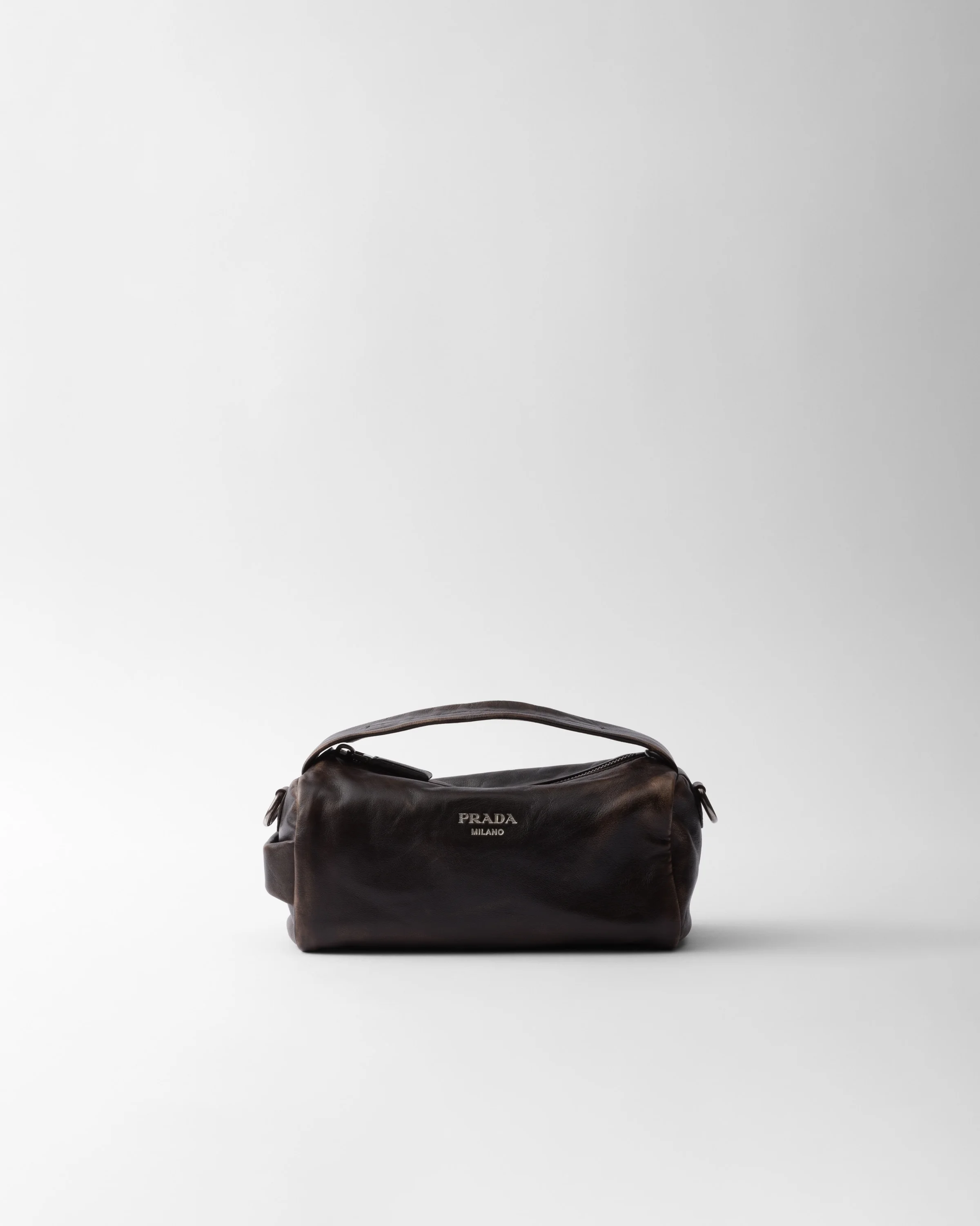 This stylish, compact bag is inspired by vintage shapes and details, beautifully blending urban style with minimalist touches. The Nappa leather, emphasized by a distressed finish, adds a soft and unique look to the accessory, embellished with the metal lettering logo. - Product code: 2VH188_2C75_F0003_V_DOO - Handle on the side - Detachable and adjustable leather handle with buckle. Maximum length 122 cm - Minimum length 102 cm - Maximum drop 56 cm - Minimum drop 46 cm - Printed logo on the front - Zipper closure - Inside pocket - Nappa lining - Imported Height: 11cm Width: 24cm Length: 11cm MATERIALS Main material: Lambskin